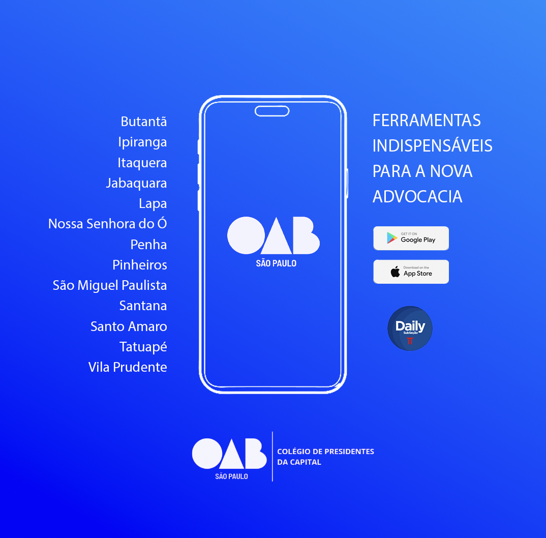Acesse serviços, eventos, cursos e informações da Subseção, a qualquer hora, de qualquer lugar, em um clique. Faça o download gratuito no seu celular.